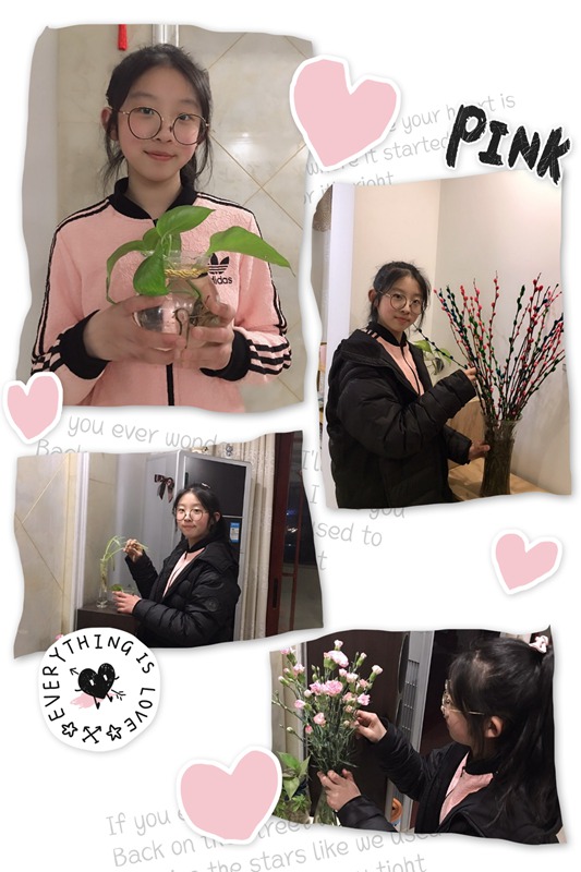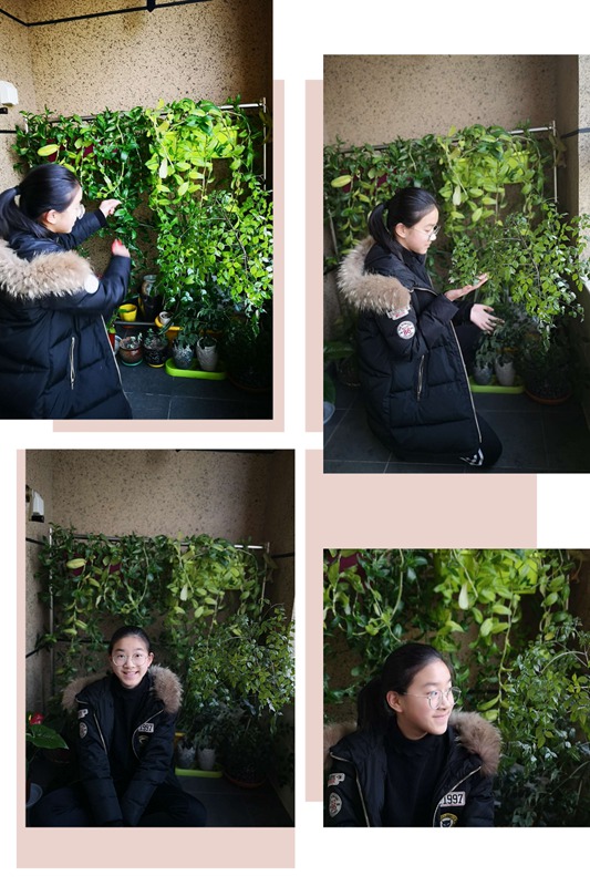 在志愿者们的家里,还种植了很多不同种类的绿色植物。如四季常青的绿萝,五颜六色的太阳花,亭亭玉立的君子兰,形态各异的仙人掌等。七年级的李佳琪说她最喜欢的是阳台上的松树,因为它四季常青,苍翠挺拔,让人难忘!希望自己也像松树一样,做一个坚韧不拔,英勇不屈的人;八年级的顾乐言谈到自己非常喜欢绿萝,它就如朝气蓬勃的孩子,勇敢执着,因为它的存在,阳台上充满了生机···