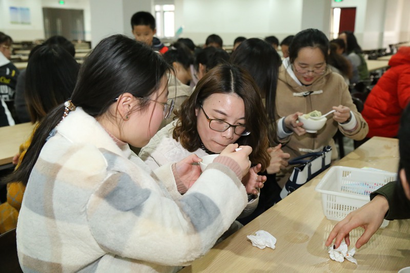 最后全体师生、家长移步分会场,“亲子包馄饨”活动正在热闹的进行中。今晚,我们有欢颜,有眼泪,有深思,有感恩。读的完的是文字,道不尽的是期盼。
