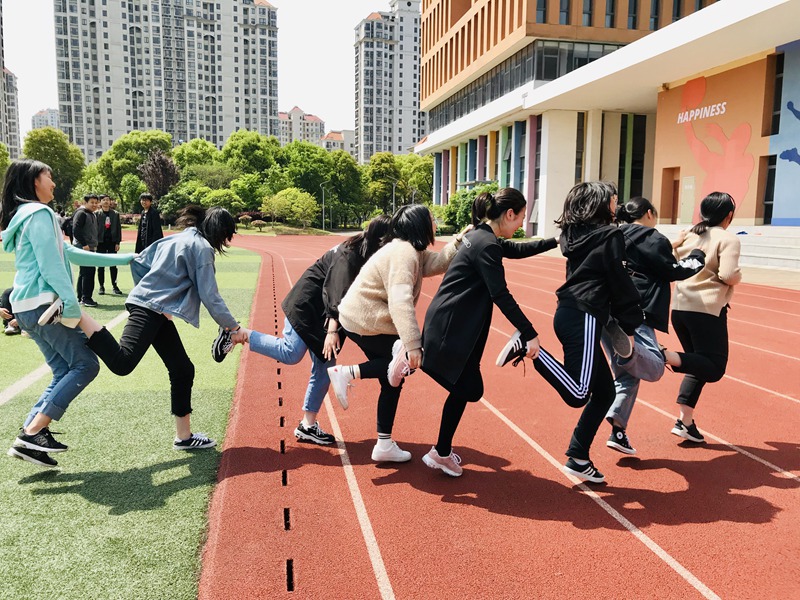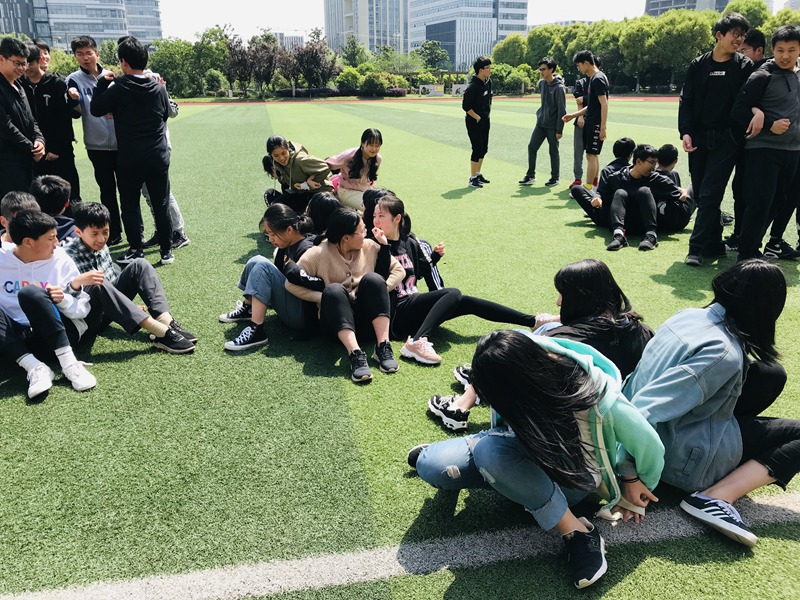 充实的学习之余,同学们的身心也需要及时的调整。4月27日上午,艳阳高照一扫前几日的阴霾,九年级同学们在老师们的带领下进行心理素质拓展活动。看似简单的游戏需要团队的齐心配合和协调技巧,两组活动让同学们欢笑不断。在团队合作中体验到的欢乐和支持感也将为同学们后续的学习带去更多的力量。