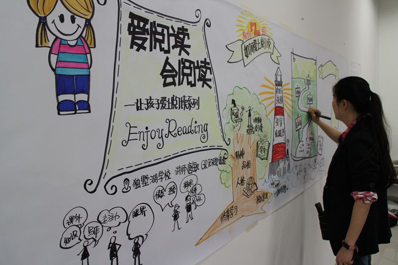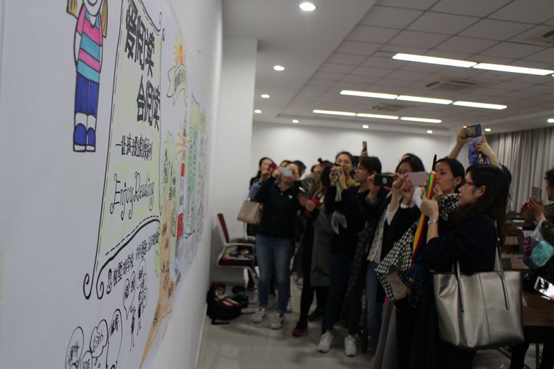 如果说你对讲座的内容还有疑惑,那么临走前看一看“阅读导图”一定让你豁然开朗!媛媛老师的简笔导图给听完讲座的家长们好好梳理了本次讲座的脉络,家长们纷纷拍照记录,直到活动结束还不愿离开,围着两位老师解惑与取经。