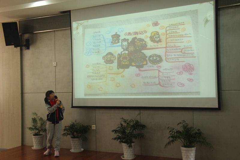 悦读节期间,孩子们利用睡前二十分钟进行阅读,再根据阅读文本,手绘思维导图设计。经过各班评比,最终二十位同学的思维导图设计在海选中脱颖而出, 代表班级参加年级评比。评比现场,入选的二十位同学,就思维导图的内容、构思、设计理念和意义进行了现场阐述,由评委现场打分。