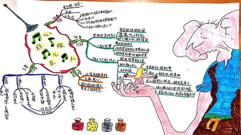 一张张静水流深的思维导图,汇聚着一位位学子,纯粹而向上的心灵。阅读后的梳理,在孩子们的心中沉淀,绽放……一本书变成一幅图以后,章与章之间,不再独立存在,思维导图让它们紧紧联系起来。孩子们的作品色彩搭配浓淡相宜,线条流畅优美,构图别具匠心,图文结合。让阅读的知识通过脉络的方式显得更加有条理和层次感、凝聚了独墅学子的智慧和思考。