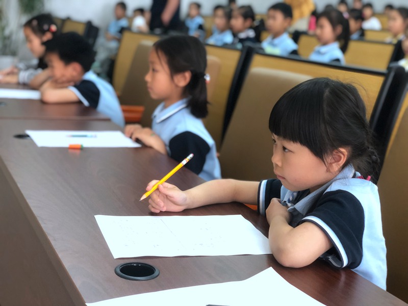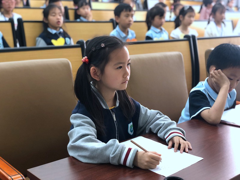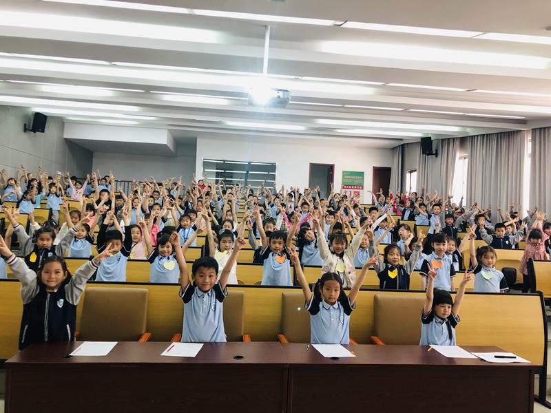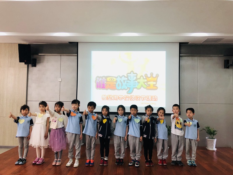 一年级的小朋友在阶梯教室里进行着“故事大王”比赛。