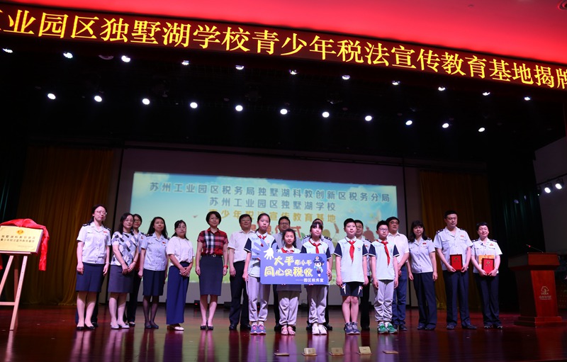 首夏犹清和,芳草亦未歇。在这样一个清爽和煦的日子里,“青少年税法宣传教育基地”在独墅湖学校成立了!税费征收,利国利民;宣传税法,人人有责。此次“青少年税法宣传教育基地”揭牌仪式得到独墅湖科教创新区领导以及园区税务局领导们的大力支持。