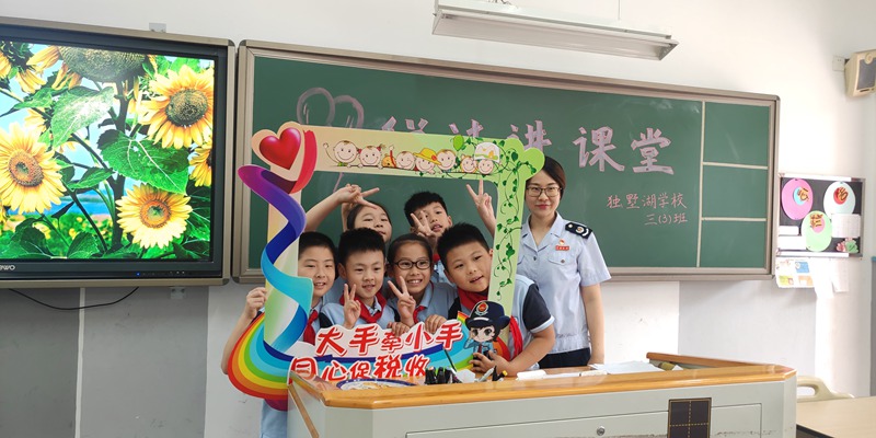 五位“税法辅导员”走进班级,给孩子们带来了一堂别开生面的税法宣传晨会课。生动有趣的动画、贴近生活的案例、积极踊跃的问答,孩子们热情的参与给税法辅导员老师留下了深刻的印象。“教育一个孩子、带动一个家庭、影响整个社会”看着孩子们聚精会神的样子,税法辅导员老师们欣慰不已,这只是一个开始,今后独墅湖学校的孩子们将会有更多机会学习到相关知识,让我们携起手来,学习税法、宣传税法,让税法在每个孩子心中扎根发芽。