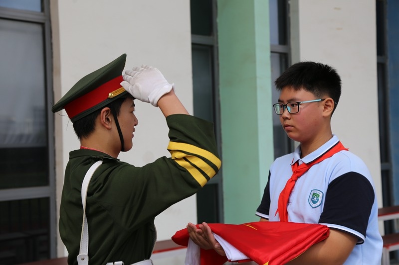 队日活动上,独墅湖学校举行了新、老国旗班交接仪式。国旗班队员全体亮相,新老队长现场交接国旗,传递神圣使命,放飞红色梦想,让红色基因永不变色,代代相传!