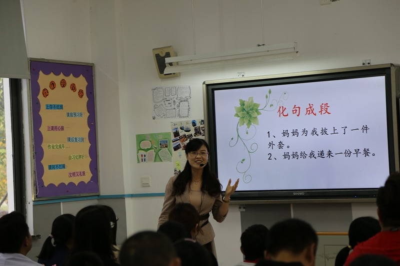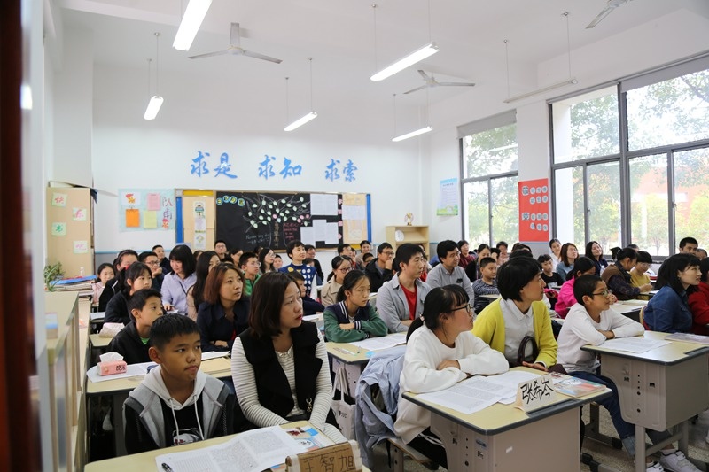 为了让家长更好地了解老师,了解课堂上孩子的表现,独墅湖学校特地精心安排了家长观摩课。全年级每个班都分别有两位老师授课,其中语文组顾彩琴老师带来了一堂《细节描写显真情》的写作课,同组褚庆华老师则是重点对学生作文进行讲评;数学组胡新宇和孔雅琴老师分别带来了有意思的《合并同类项》;英语组朱燕燕和汪婷婷老师分别演绎了Task和Reading部分的教学;美术组王峘老师上了一堂活灵活现的美术课;生物组吴兰兰老师则带来了一堂有趣生动的探究“莲叶效应”的纳米课。
