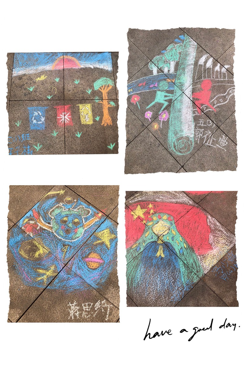18日中午,独墅湖学校美术组的老师与同学们汇聚在榉树下,大家一同用粉笔描绘了“我爱祖国,我爱环保”的字样。当指令下达后,同学们迫不及待拿起了画笔,或凝思静想,粉笔在地面上不停比划、或精心勾勒,让画面丰富有趣、或笔走行云,流畅的线条显示出娴熟的技巧。有的同学还向大家介绍了自己的创作想法。不一会儿,一幅幅精彩的作品便跃然呈现。虽说很多同学都是第一次尝试用粉笔作画,但他们都能各自将美好的心愿表达出来,他们用一支支粉笔描绘心灵,用一块块色彩挥洒激情,用挥动的小手展现了对祖国,对环保的热爱。活动结束后,分别评出一、二、三等奖及优秀奖若干名。