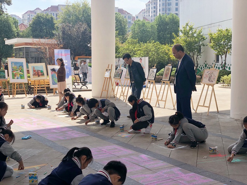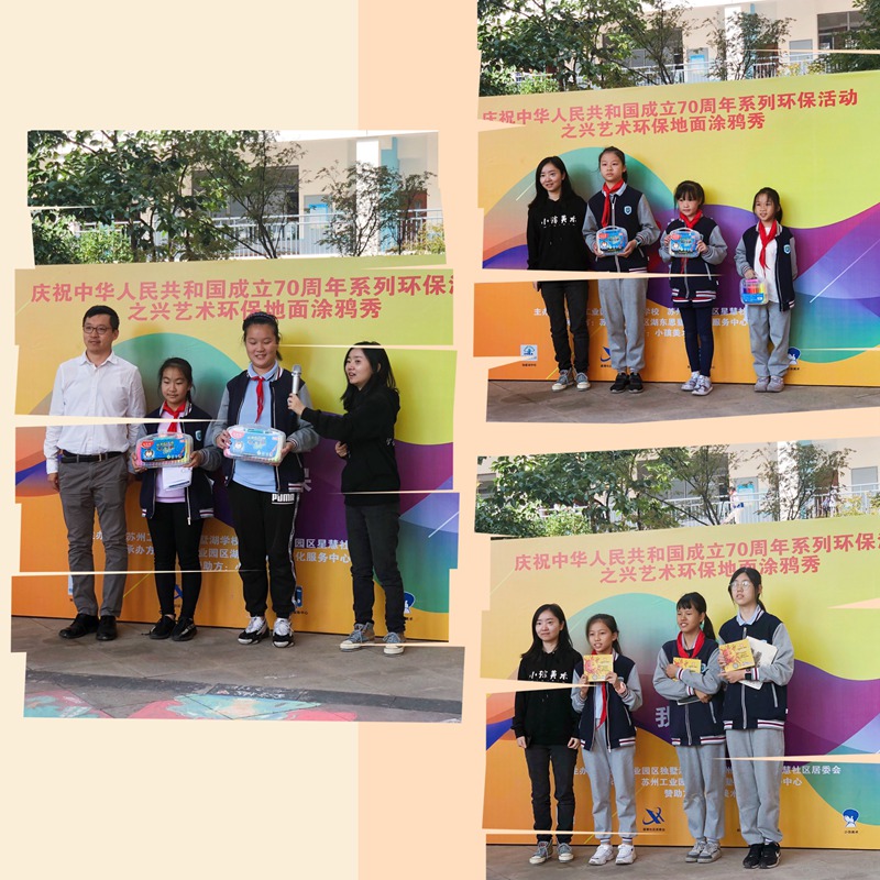 习近平总书记曾经说过:绿水青山就是金山银山。的确,爱护绿水青山就是爱护我们的家园,新中国建国70周年之际,独墅学子们正用绿色环保的小行动表达对祖国妈妈的爱。在热心家长代表、人大校友赵扬博士的策划和联络下,独墅湖学校与与苏州工业园区星慧社区居委会、苏州工业园区湖东思孰慧文化服务中心就共同举办了一场艺术环保地面涂鸦秀,本次活动受到了“小孩美术” 画你爱萌网络科技有限公司的大力支持。