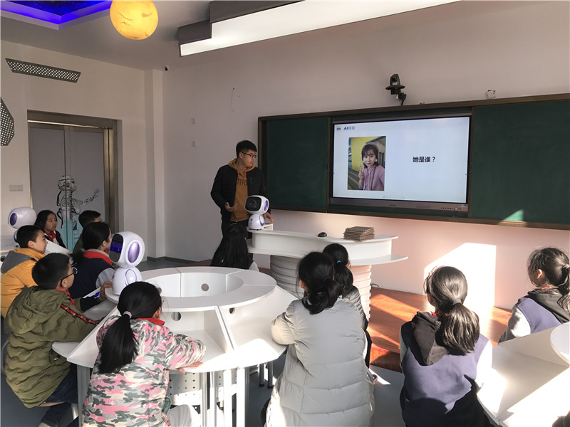 那么,什么是人脸识别呢?其背后又由怎样的人工智能技术进行支撑呢?这些高端前沿的人工智能课程,正在独墅湖学校的课堂里悄悄开展。12月9日下午,独墅湖学校六(2)班的孩子们来到学校人工智能教室,做为学校人工智能周的一部分,章陈斌老师为他们带来了一场别开生面的人工智能课。从孩子们熟悉的老师入手,到讲解示范,到编写程序,到实践操作,章老师用深入浅出的语言带领孩子们学习图像识别的原理和操作方法。