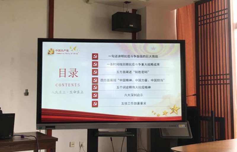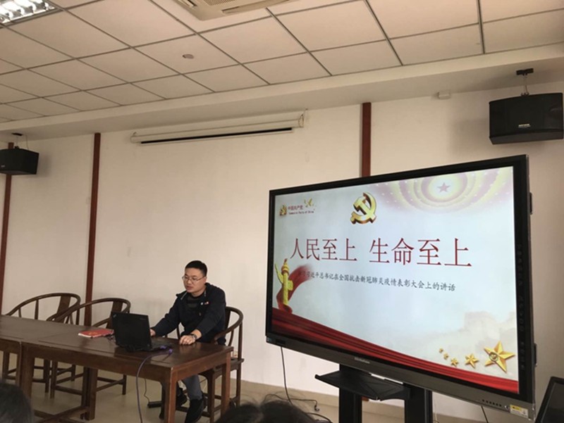 随后,支部委员韩光东带领大家深入学习习近平总书记在全国抗击新冠肺炎疫情表彰大会上的重要讲话精神。