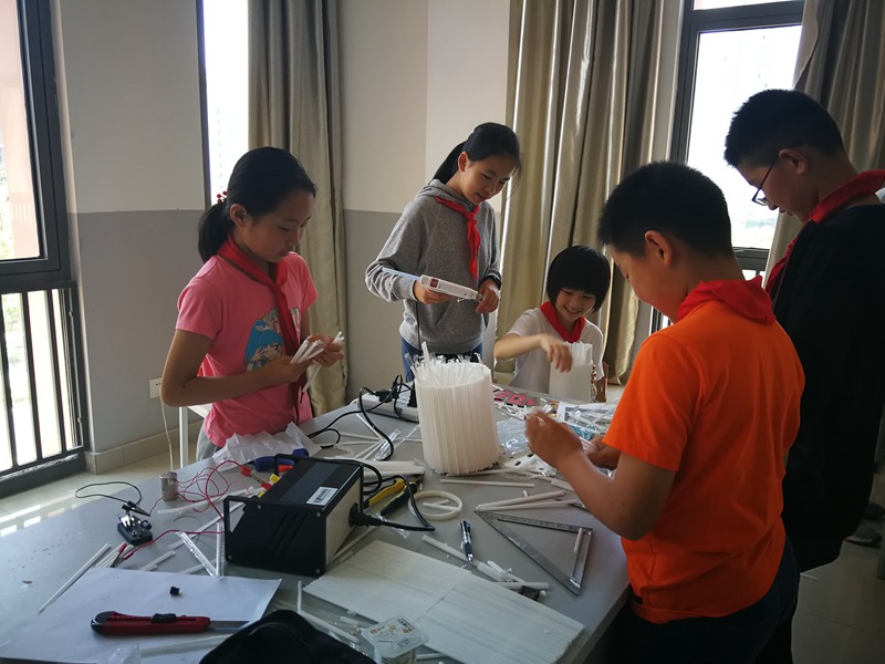 在“一到无穷”项目中,姜致远团队从我国蓬勃发展的航天事业中取得灵感,利用吸管制作了一个“宇宙空间站”,高达2.5米的作品赢得了众评委的一致好评,获得小学组一等奖。
