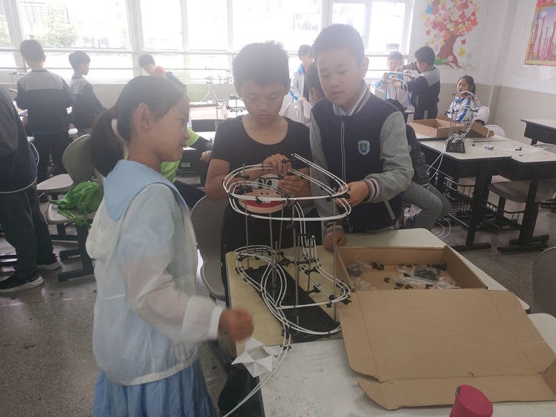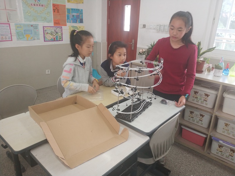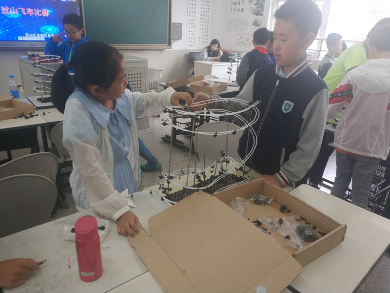 小小的弹珠在轨道中划过,走过一个个弯道走过一个个回环平稳到达终点,掐下秒表时间停留在10秒前后。在过山飞车比赛中我校由杨徐媛、冉译嘉、王芯雅组成的小组和陈志博、张景辉组成的小组通力合作搭建出了“最完美”的过山车轨道,用自己的实力获得了两个该项目的一等奖。这便是对他们平时的刻苦训练最好的回报。