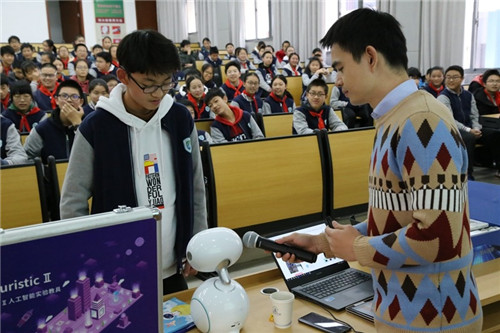 在学校一年一度的大型科技品牌项目——“乐创节”活动中,学校专门设立了“人工智能周”。在这一周中,学校各个年级的学生都开展了丰富多彩、生动有趣的科普宣传、体验活动。不仅有本校人工智能专职教师带来的人工智能体验课、AR与VR讲座、无人机讲座,还有科大讯飞等国内顶级的人工智能研发单位的技术人员来校为学生作科普讲座。我们还组织学生走出校园,走进科大讯飞人工智能体验馆参观,在体验馆里进行人机大战、模拟飞行……丰富的活动,让学生们畅游在科技的海洋,体验科技的魅力,触摸科技的前沿。