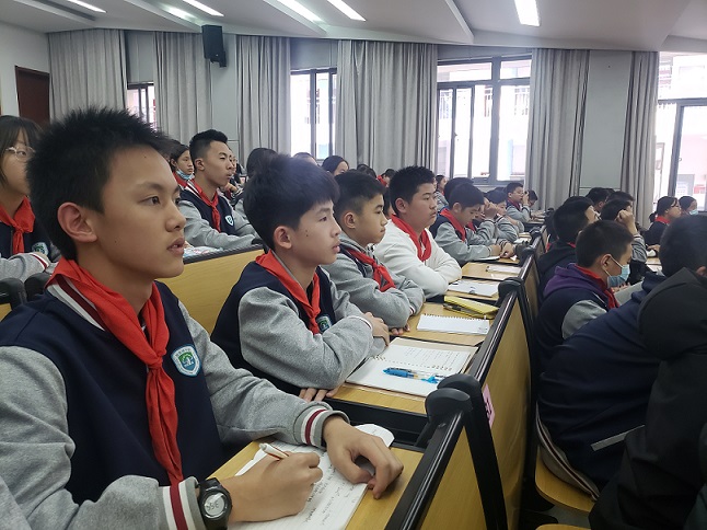 朱老师以精美生动的课件为同学们呈现了丰富的生物学知识,并结合当前新冠疫情的发展态势及疫苗防控作相关分享。她的讲解联系实际生活、深入浅出,同学们详实地记录笔记并予以阵阵掌声。聆听过程中有疑问的同学更是主动与朱老师进行面对面交流。