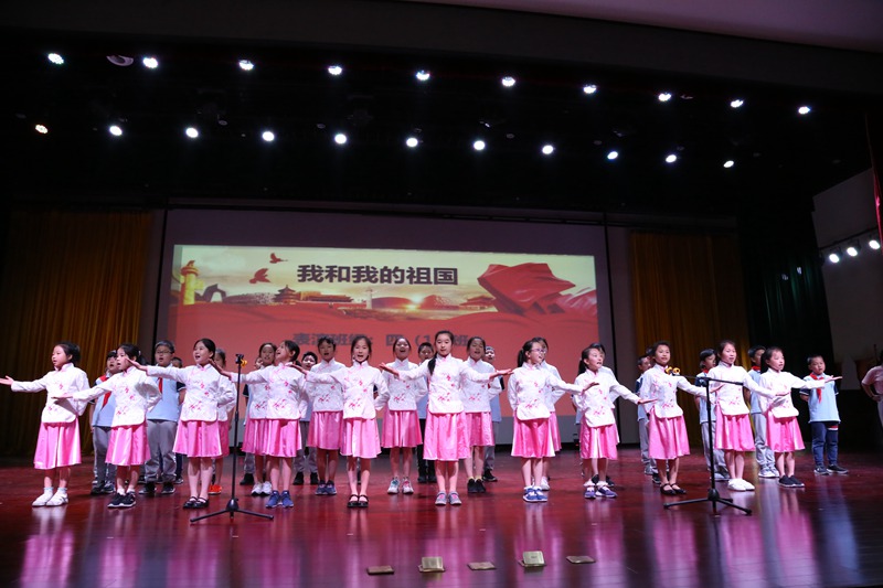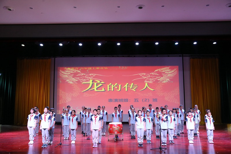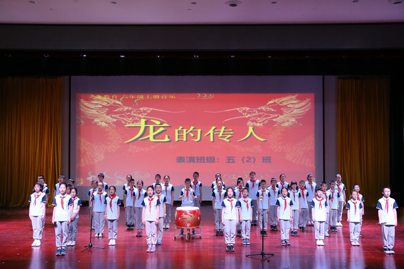 笛声悠扬、鼓声雷动是由五(2)班同学给我们带来的一首《龙的传人》,同学们演唱节奏准确鲜明,声音整齐响亮,唱出了浓浓地爱国之情。