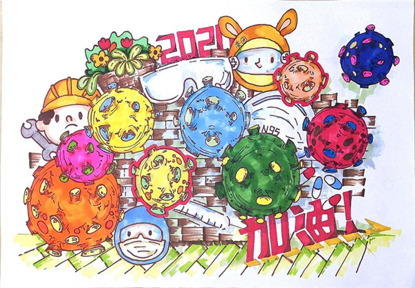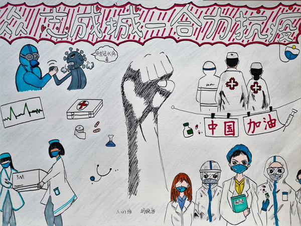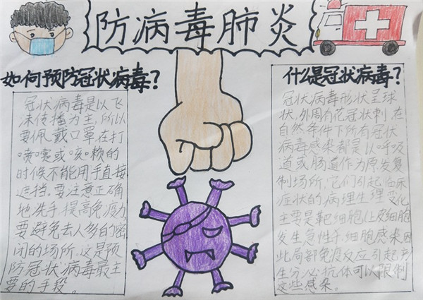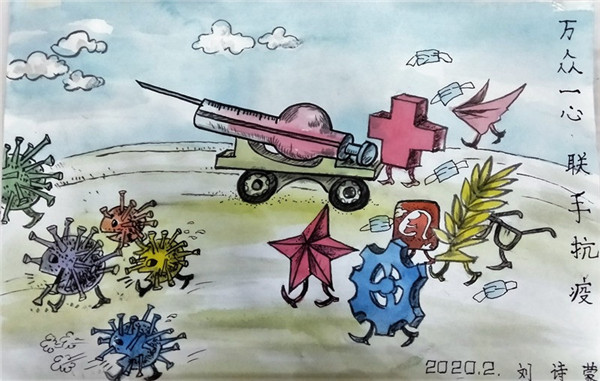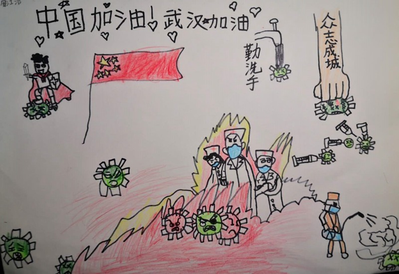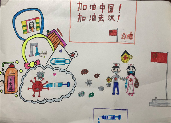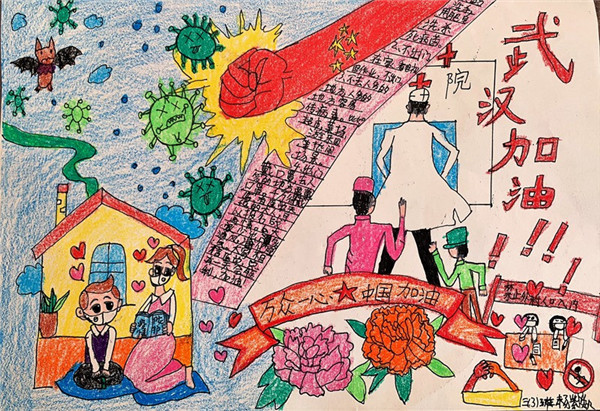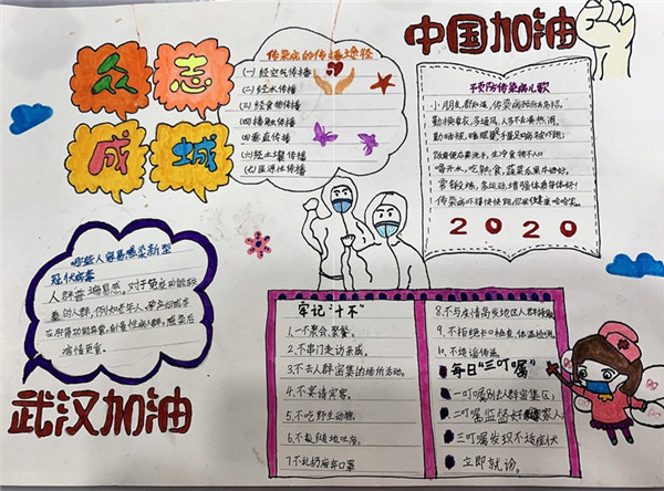 作品中,不仅有主题鲜明、鼓舞人心的电脑绘画、有对新冠肺炎图文并茂的科普知识手抄报,也有对禁食野味、杜绝传播渠道的漫画,还有同学录制的小视频。每一幅作品,都是学生们心系疫区、共克时艰的真情表达!